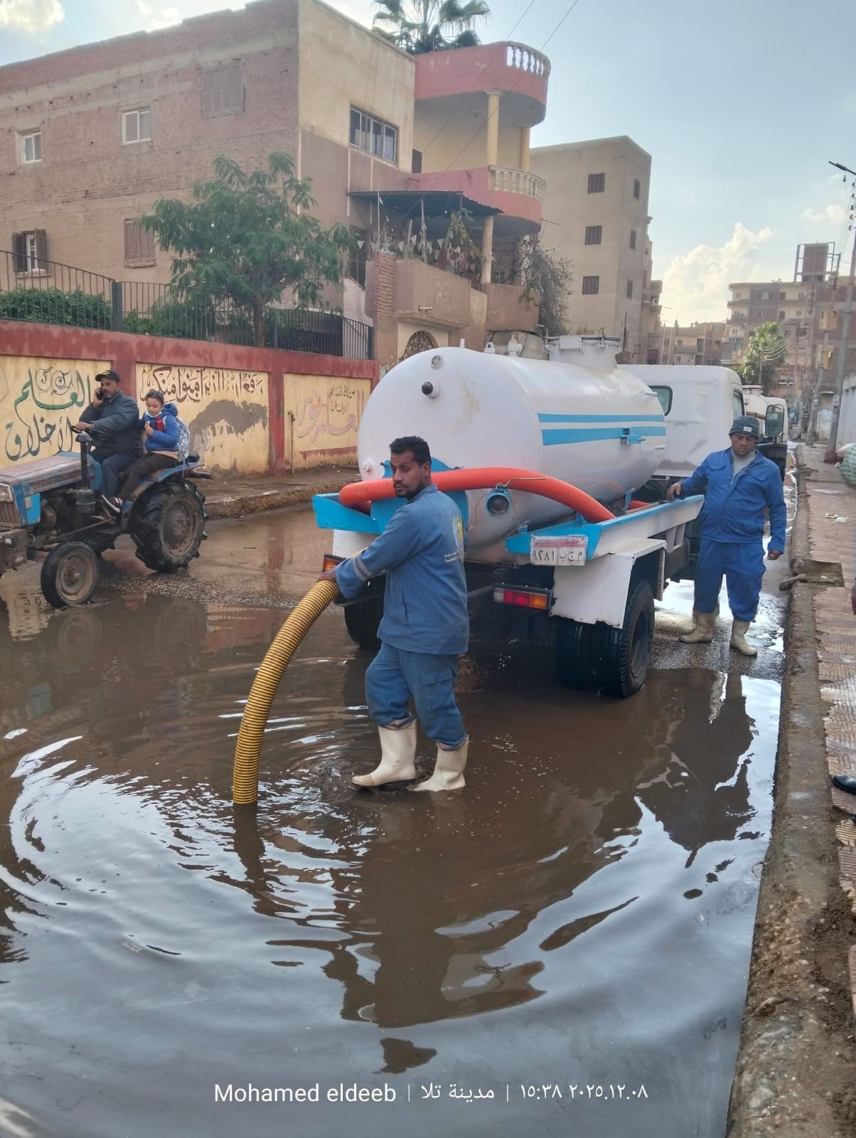 مياه المنوفية: شفط تجمعات مياه الأمطار وتمركز عربات شفط الأمطار بأماكن تجمعات الأمطار .