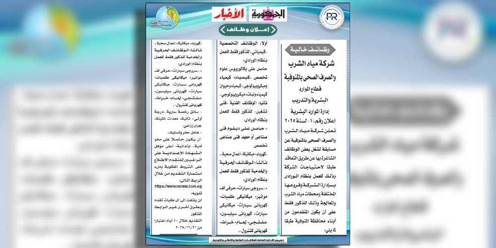 شركة مياة الشرب والصرف الصحى بالمنوفية.