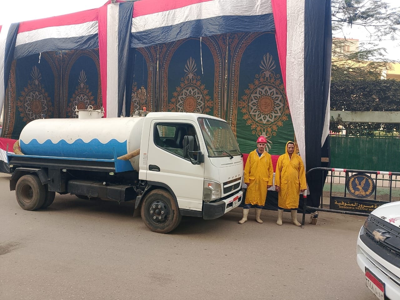 #بالصور تمركز سيارات شركة مياه الشرب والصرف الصحى بالمنوفية بمحيط اللجان الانتخابية لتأمين خدمة مياه الشرب والصرف الصحى والاستعداد التام لأى طواريء .
