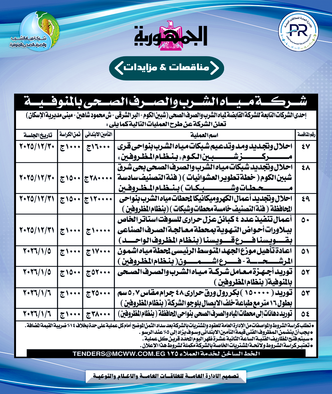 مناقصات شركة مياه الشرب والصرف الصحي