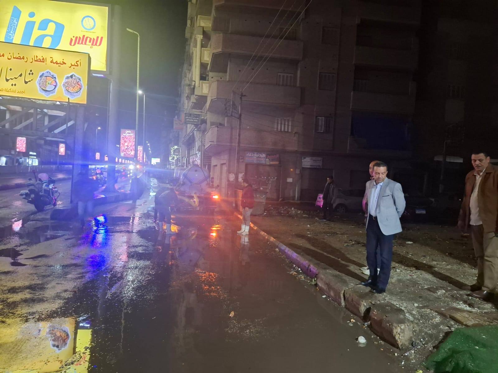 خلال جولة مسائية بالصور : محافظ المنوفية يتابع ميدانيا جهود شفط مياه الأمطار والتعامل الفوري مع موجة الطقس السيئ بحي شرق وغرب شبين الكوم .