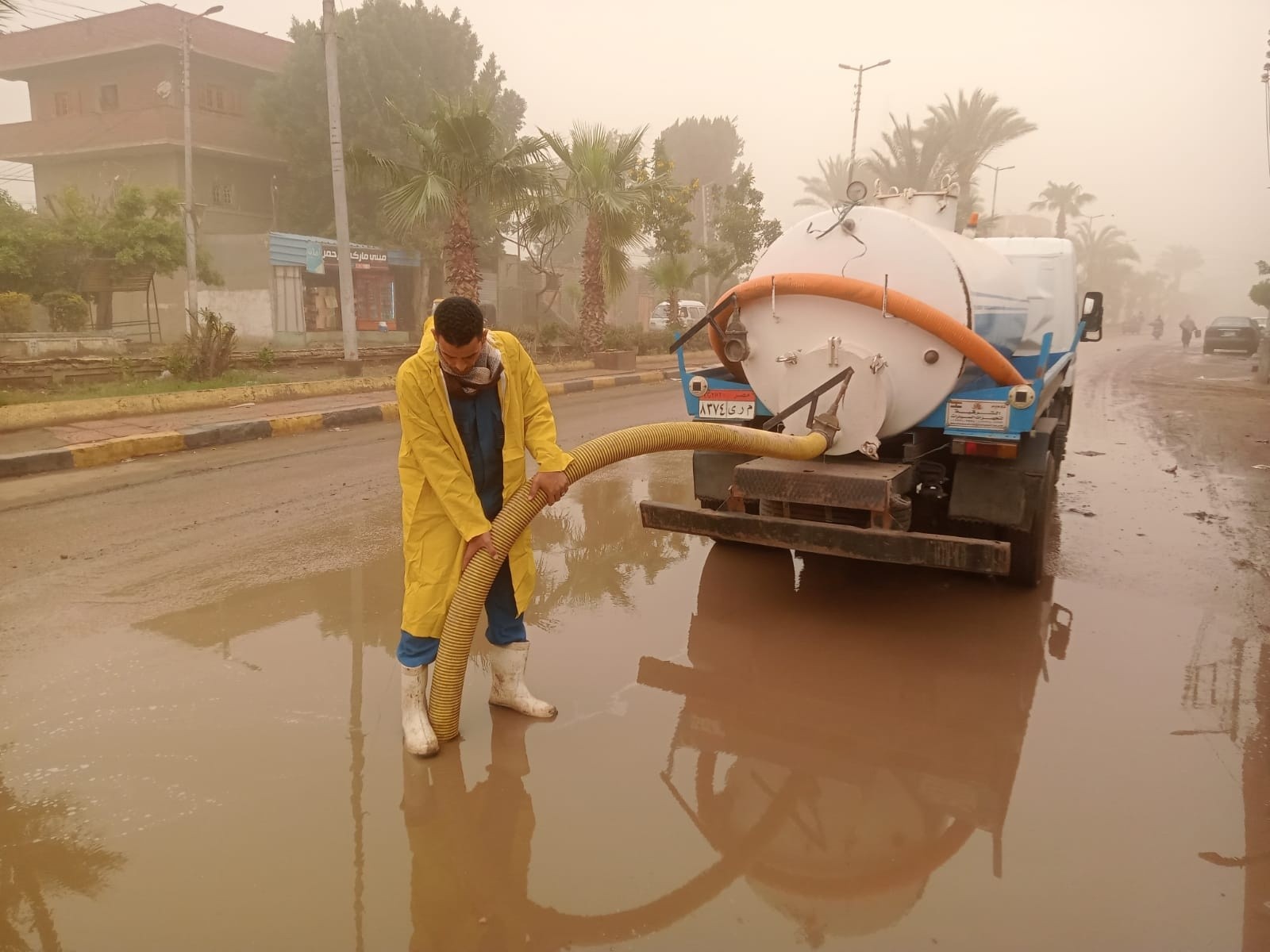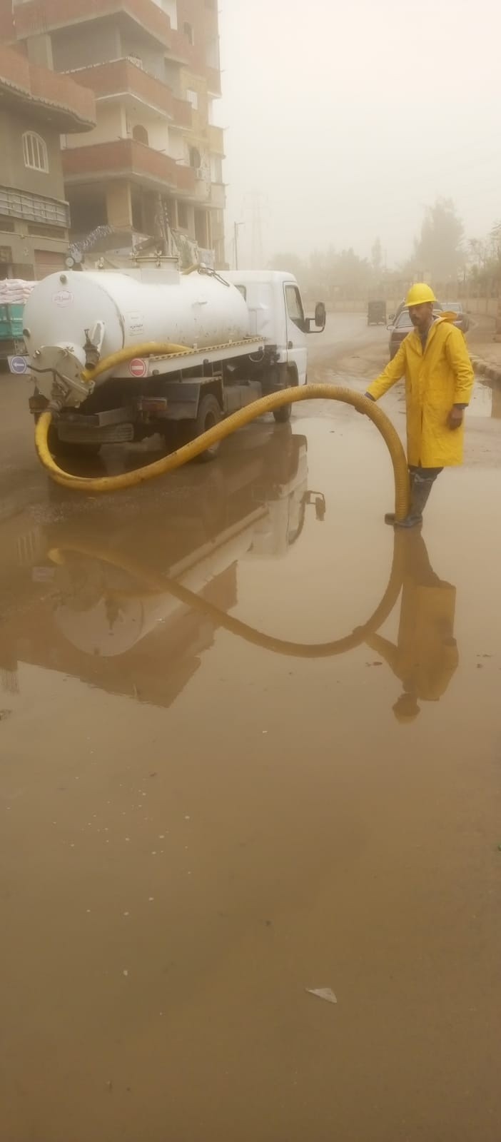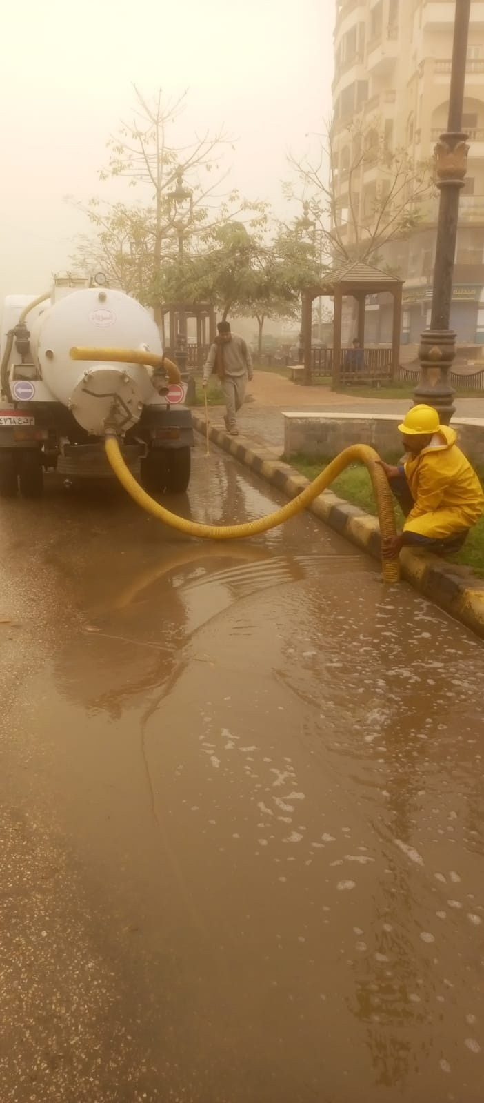 وكلف رؤساء الافرع بمتابعة عملية شفط مياه الأمطار بالشوارع وعلى الفور تم الدفع بالمعدات اللازمة من عربات الكسح وماكينات الشفط بالتنسيق مع الجهات المعنية وتم عمل اللازم وشفط تجمعات مياه الامطار .