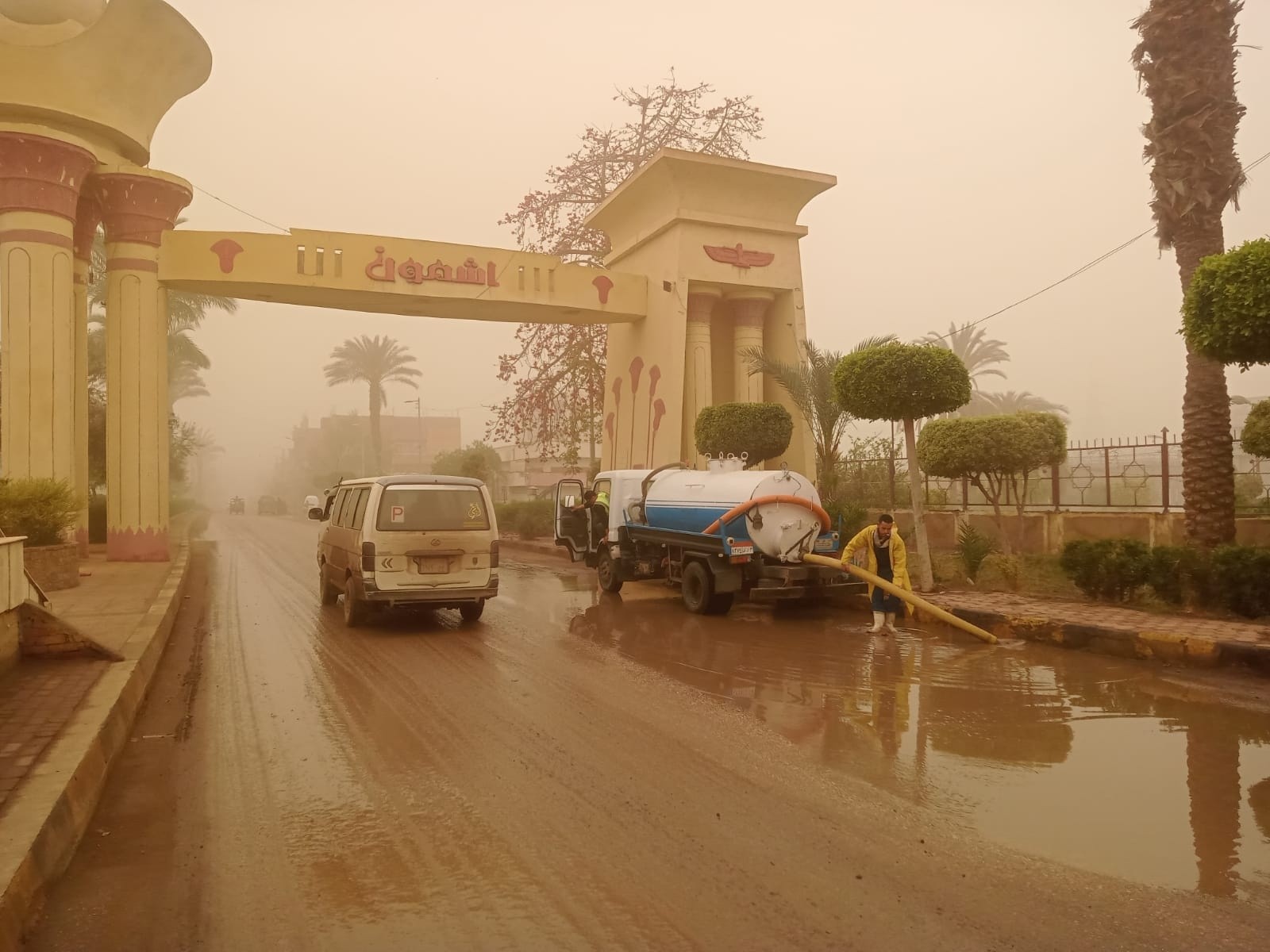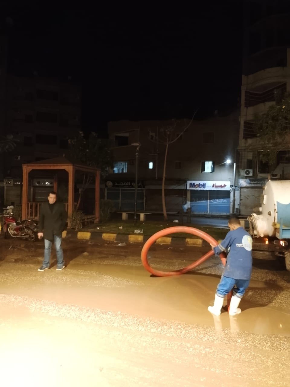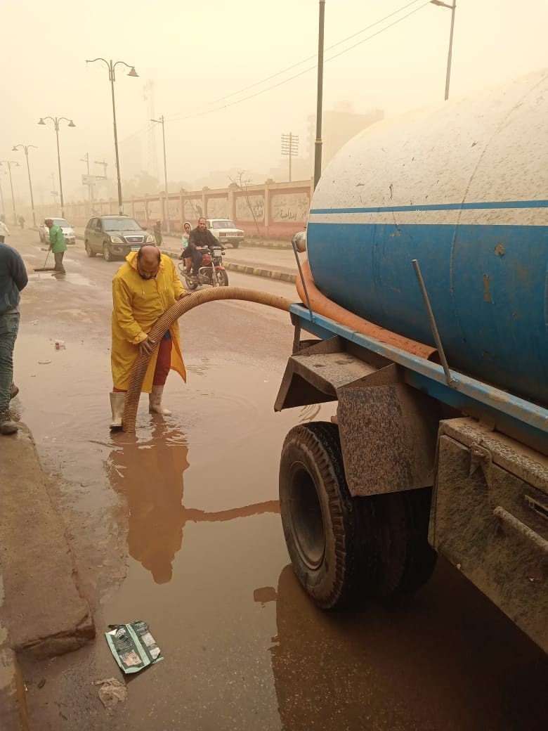 وكلف رؤساء الافرع بمتابعة عملية شفط مياه الأمطار بالشوارع وعلى الفور تم الدفع بالمعدات اللازمة من عربات الكسح وماكينات الشفط بالتنسيق مع الجهات المعنية وتم عمل اللازم وشفط تجمعات مياه الامطار .