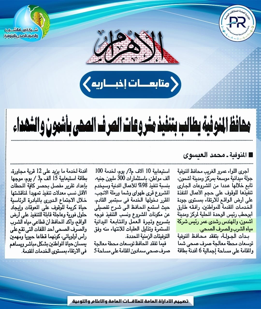 #شركة_مياه_الشرب_والصرف_الصحي_بالمنوفية #إعلام_مياة_المنوفية #متابعات_اعلامية